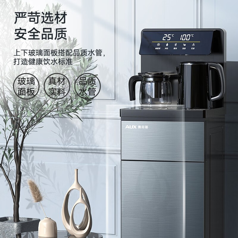 奥克斯(AUX) 茶吧机 家用多功能智能遥控大屏双显立式下置式饮水机 加厚铁侧板 旗舰大屏遥控双显【温热型】布鲁克林灰6765件已付款抢! -