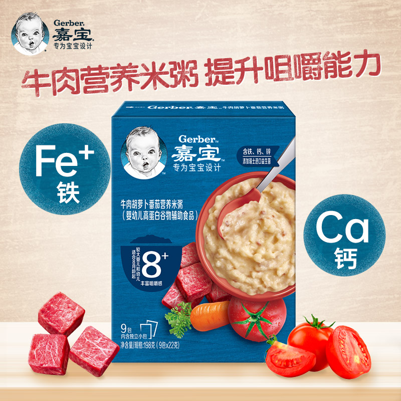 嘉宝(Gerber)米粥婴儿辅食 营养宝宝谷物粥米198g 【8月+】牛肉胡萝卜番茄6652件已付款抢! -