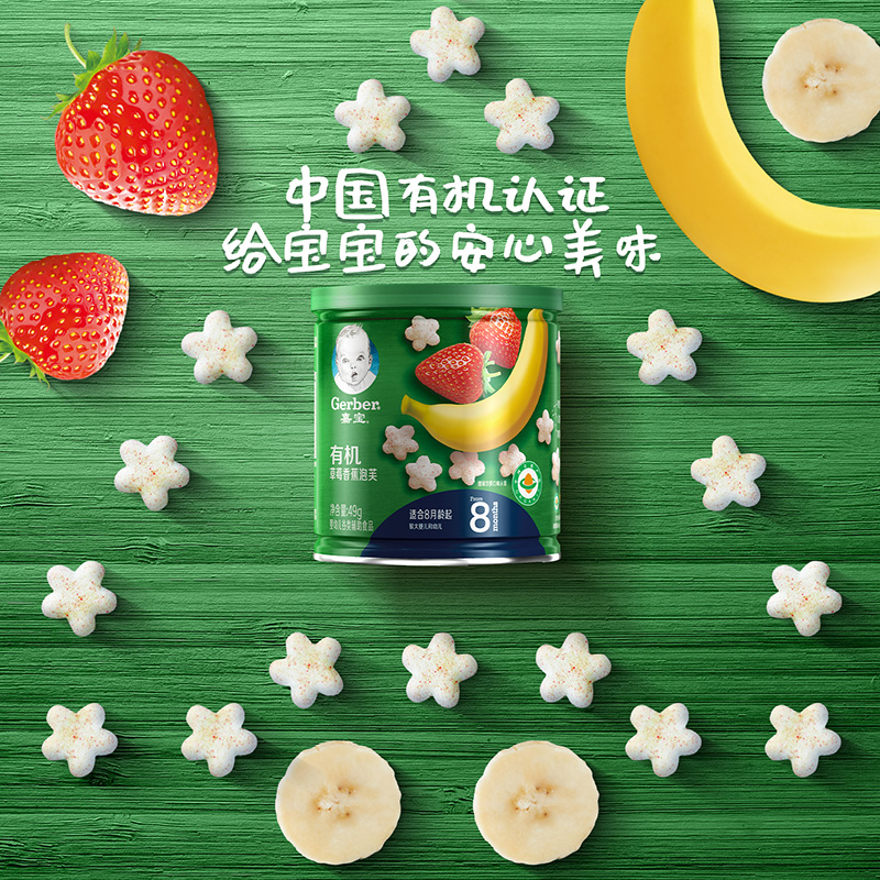嘉宝(Gerber)婴儿辅食宝宝 不添加糖和盐 有机草莓香蕉泡芙星星米饼49g 磨牙饼干米饼 (8月龄以上)1244件已付款抢! -