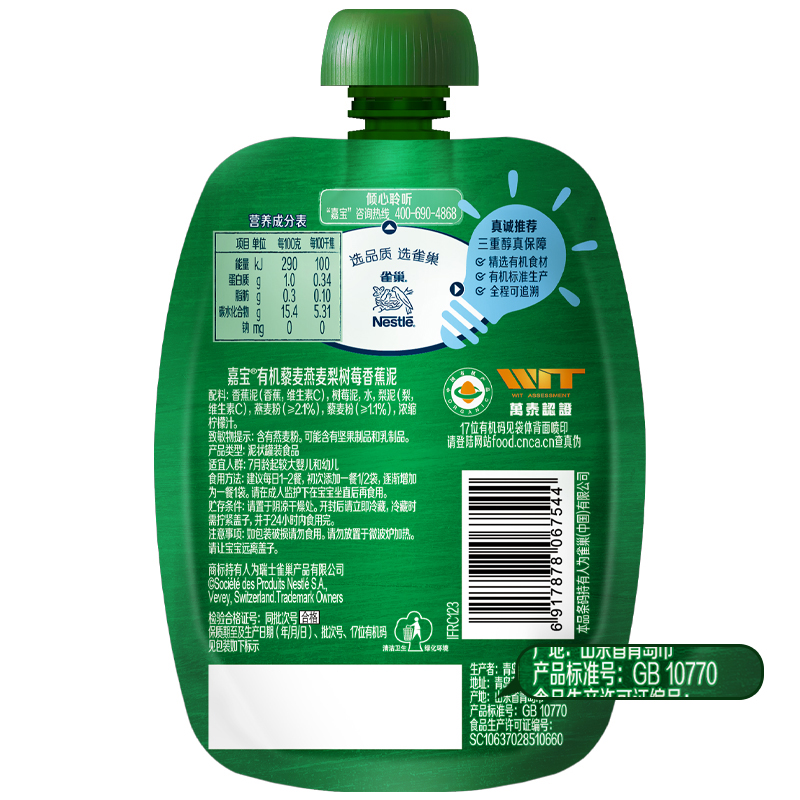 嘉宝(Gerber)有机藜麦燕麦梨树莓香蕉泥 婴儿果泥宝宝辅食泥婴儿西梅果泥零食(7+月龄适用)90g*1袋8980件已付款抢! -