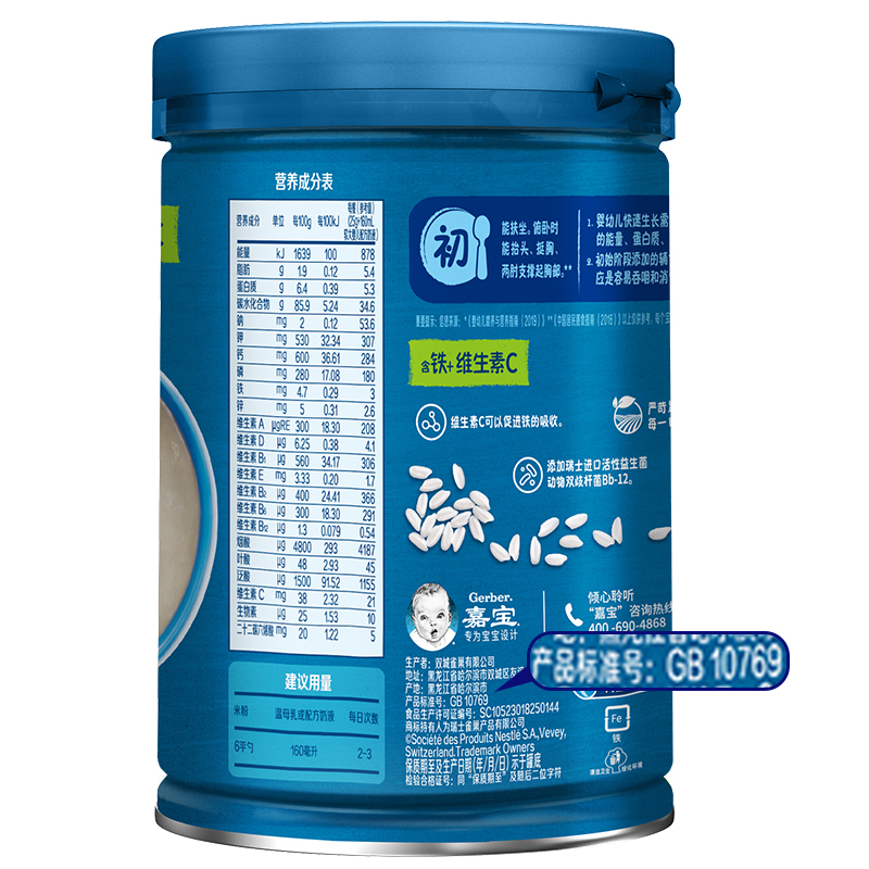 嘉宝(Gerber)高铁好吸收原味营养米粉250g 含DHA 和 活性益生菌,细腻米糊2194件已付款抢! -