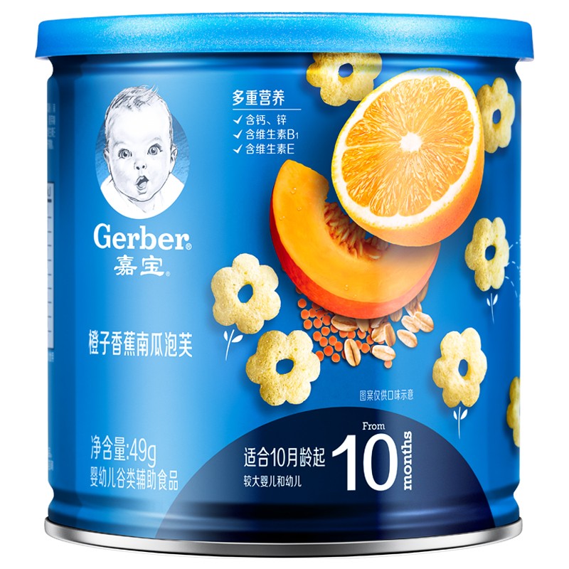 嘉宝(Gerber)婴儿辅食宝宝零食 橙子香蕉南瓜泡芙 星星米饼 磨牙饼干米饼49g(婴儿零食10个月)2961件已付款抢! -