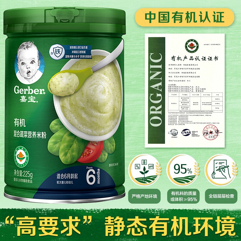 嘉宝(Gerber)米粉婴儿辅食 高铁米粉宝宝米糊 【6月+】有机混合蔬菜225g 15193件已付款抢! -