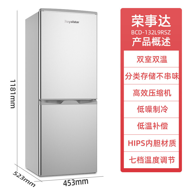 荣事达(Royalstar)双门电冰箱小型家用静音节能冷藏冷冻冰箱宿舍租房迷你保鲜小冰箱 132L 9RSZ 银色7488件已付款抢! -