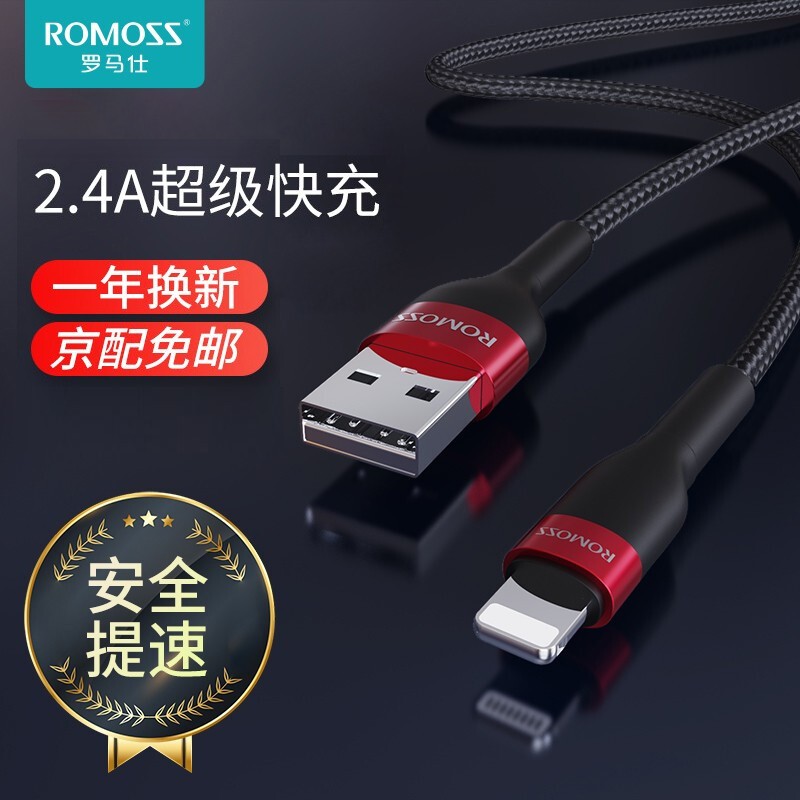 罗马仕(ROMOSS) 苹果数据线快充手机usb充电器线游戏电源适用iPhone12/11/iPad 2.4A苹果快充数据线-1米 一条送一条4283件已付款抢! -