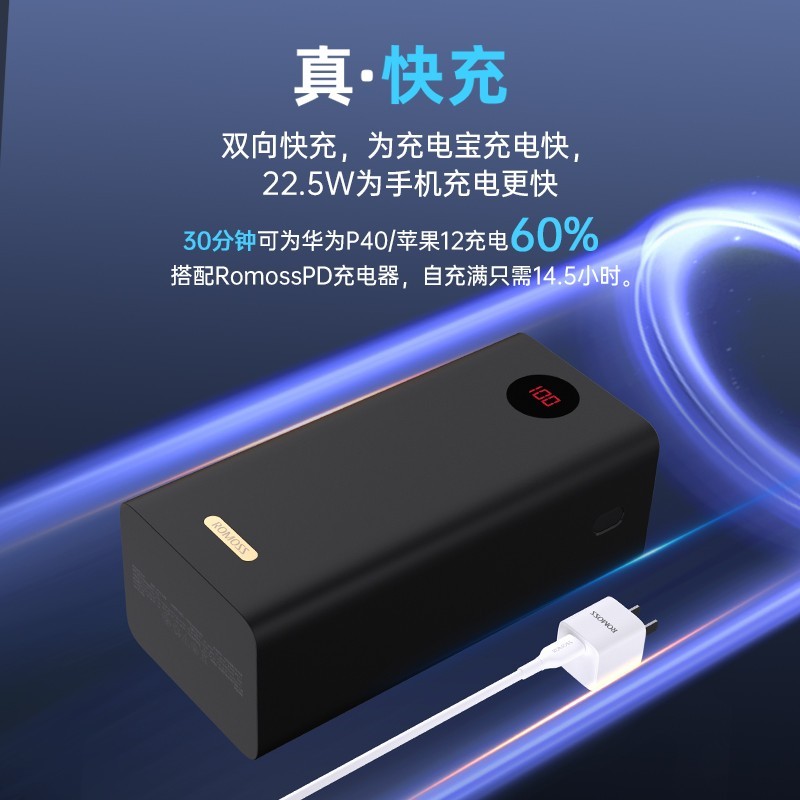 罗马仕60000毫安时移动电源充电宝大容量22.5W快充闪充适用旅游外卖荣耀iQOO苹果12华为手机 60000毫安【22.5W标准版】6538件已付款抢! -