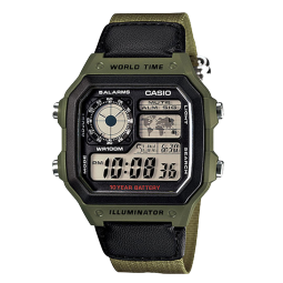 卡西欧(CASIO)新年节礼物 手表ins小方表网红表运动系列多功能户外防水电子手表 绿盘绿帆布带AE-1200WHB-3B2664件已付款抢! -