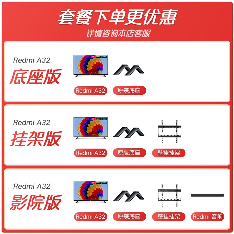 小米(MI) 电视红米Redmi A32英寸2022款全面屏高清64位处理器智能网络电视机出租房卧室 Redmi智能电视A32 底座版1333件已付款抢! -