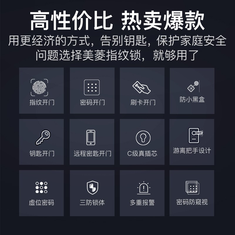 美菱(MELNG)指纹锁智能门锁家用防盗门密码锁电子锁大木门标准锁体霸王锁体支持NFC蓝牙远程解锁 ML-302/BN-8【全国免费上门安装】6298件已付款抢! -