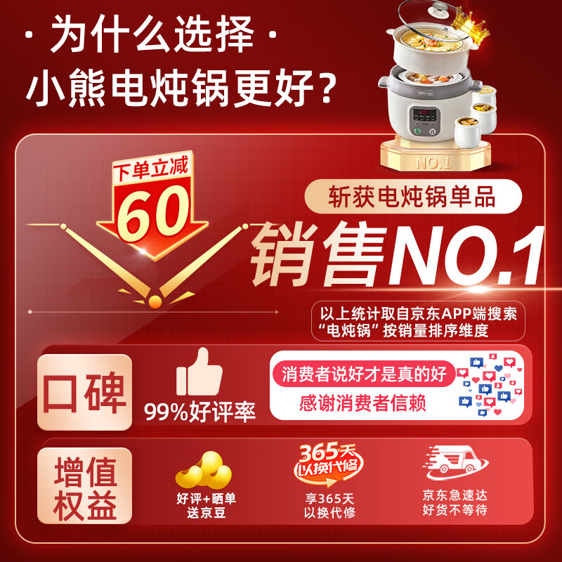 小熊(Bear)电炖锅 电炖盅 隔水炖锅 煲汤锅 燕窝炖盅 炖汤锅 婴儿煮粥神器 DDZ-C25X6 2.5L配蒸笼8971件已付款抢! -