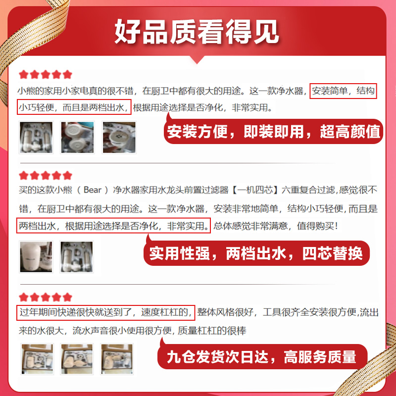 小熊(Bear )净水器水龙头 家用厨房自来水过滤器 台式前置滤水器 水龙头过滤器净化器 CX-E0034一机四芯5198件已付款抢! -