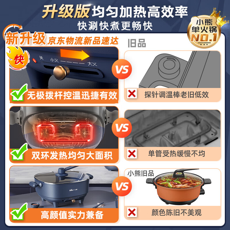 小熊(Bear)电火锅 电炒锅 电煮锅 电锅一体 电热锅多功能多用途家用烤肉涮火锅专用锅具6L DHG-C60F2火锅锅4937件已付款抢! -
