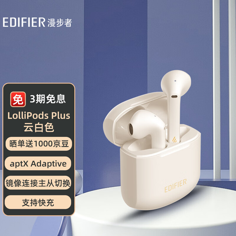 漫步者(EDIFIER)LolliPods Plus 真无线蓝牙耳机 音乐耳机 半入式耳机 通用苹果安卓手机 萝莉pods 云白8054件已付款抢! -