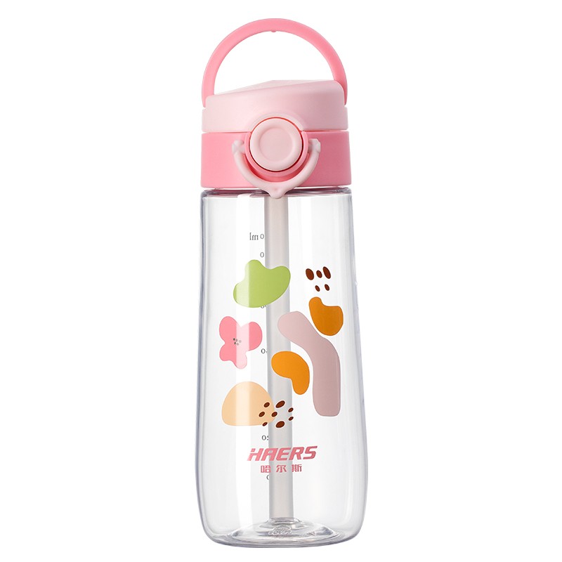 哈尔斯(HAERS) 手拎儿童运动水杯子男女塑料杯tritan材质吸管杯户外便携太空杯学生夏季喝水杯 糖心粉450ML9760件已付款抢!