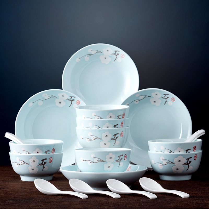 佳佰 20头盘碗勺餐具套装 高脚防烫饭碗深盘汤盘饭盘 家用陶瓷 雪香系列8875件已付款抢! -