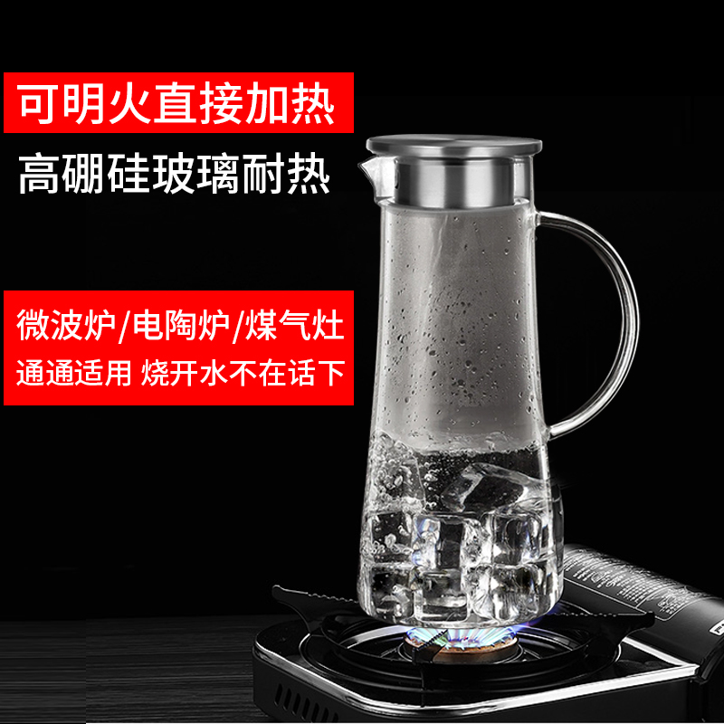 佳佰 冷水壶 大容量耐热玻璃杯 花茶果汁杯热饮家用玻璃凉水壶 1200ml9773件已付款抢! -