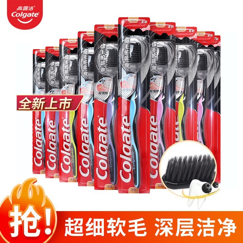 高露洁牙刷细毛护龈 备长炭适齿纤柔炭旋丝软毛中毛成人男女士手动情侣牙刷竹炭牙刷套装家庭装 细毛护龈牙刷10支8528件已付款抢! -