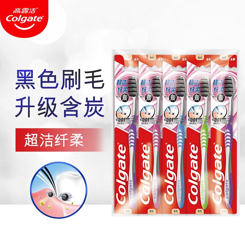 高露洁(Colgate)超洁纤柔牙刷 含炭黑超细软毛牙刷成人口腔深层清洁家用组合装 超洁纤柔牙刷×106589件已付款抢! -