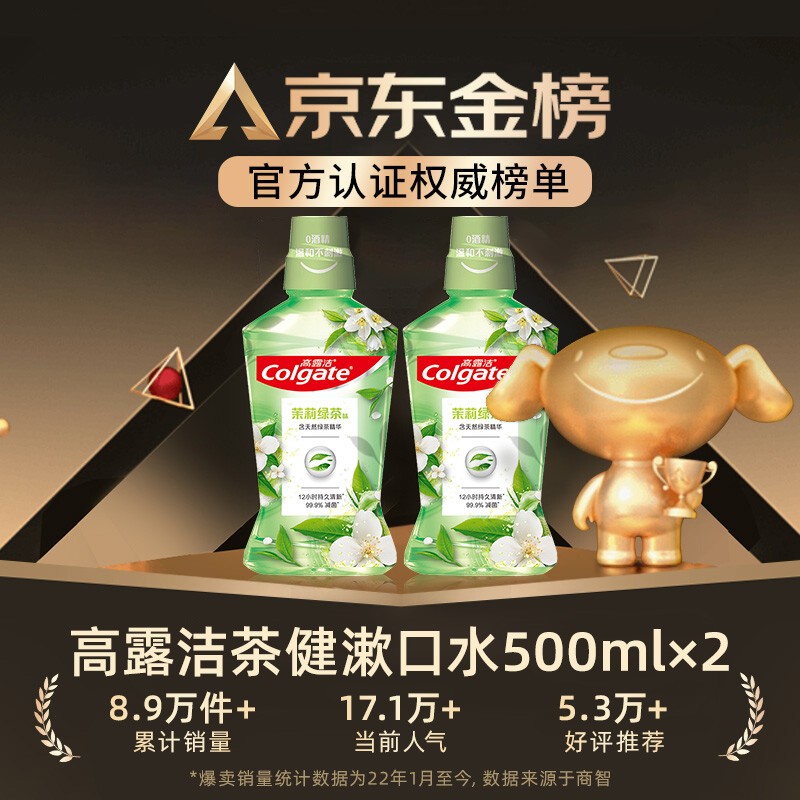 高露洁(Colgate)贝齿清新茶健漱口水500ml×2 预防蛀牙减少细菌清新口气无酒精温和不刺激1513件已付款抢! -