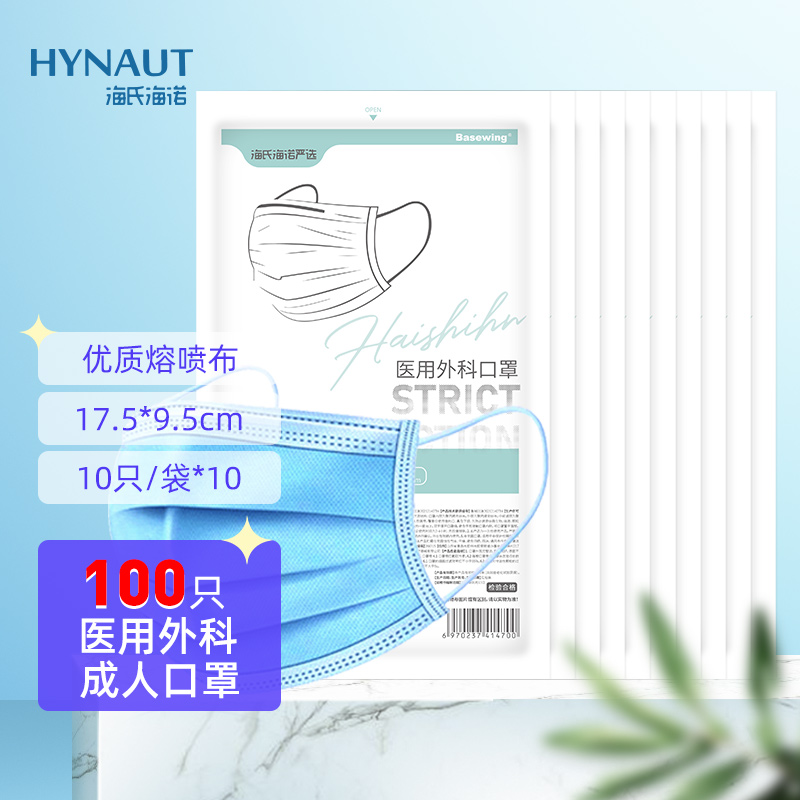 海氏海诺严选 100只医用外科口罩 一次性无纺布夏季成人口罩防尘防晒防柳絮骑行透气口罩10只*10袋5964件已付款抢! -