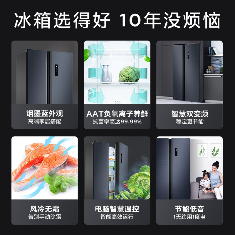 TCL 520升 对开门冰箱双门 风冷无霜变频冰箱电脑控温节能省电大容量BCD-520WEPZA50 流光金2337件已付款抢! -