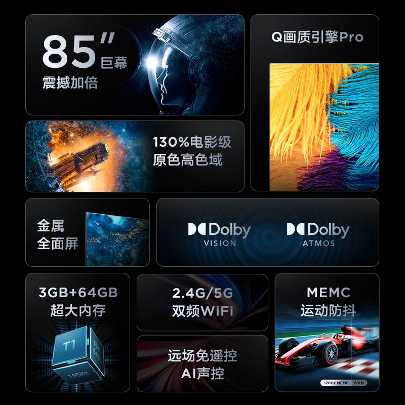 TCL电视 85V6E Pro 85英寸 130%高色域 3+64G大内存 客厅巨幕影院 MEMC防抖 NFC 京东小家液晶网络智能电视机7328件已付款抢! -