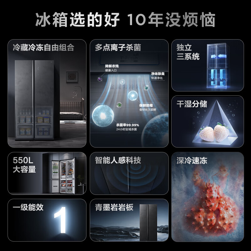 TCL Q10格物冰箱550升对开双开门大容量三系统 多点离子杀菌净味 独立变温区 一级变频家用电冰箱R550Q10-S4313件已付款抢! -