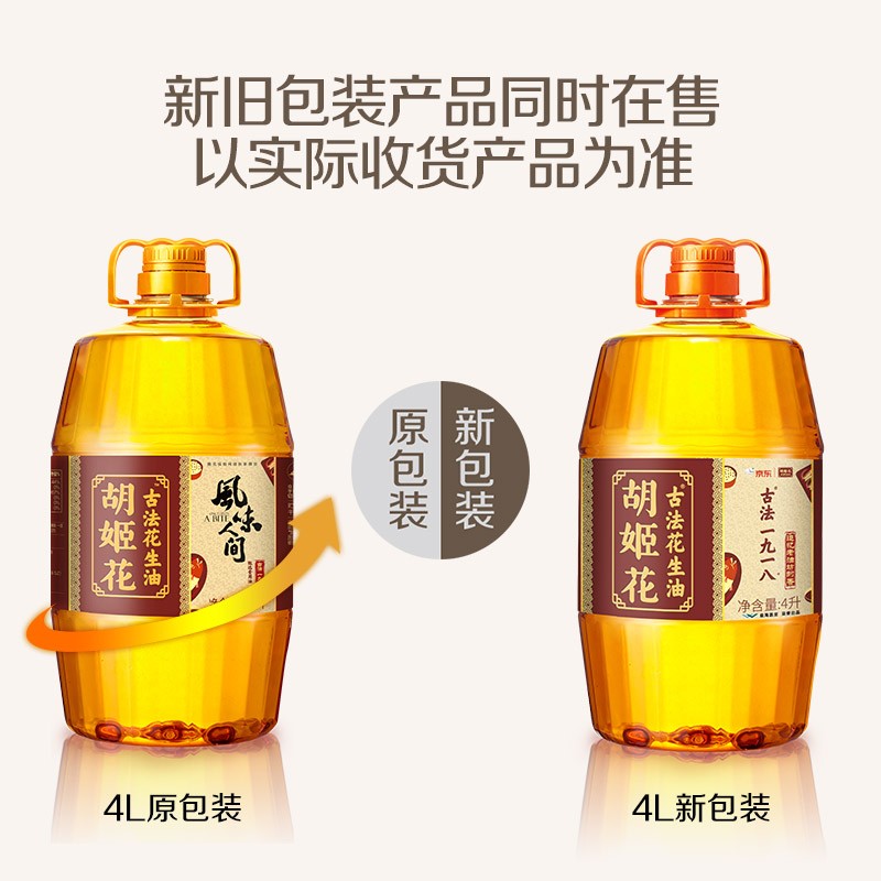 胡姬花 食用油 古法压榨一九一八花生油4L(新老包装随机发货)1935件已付款抢! -