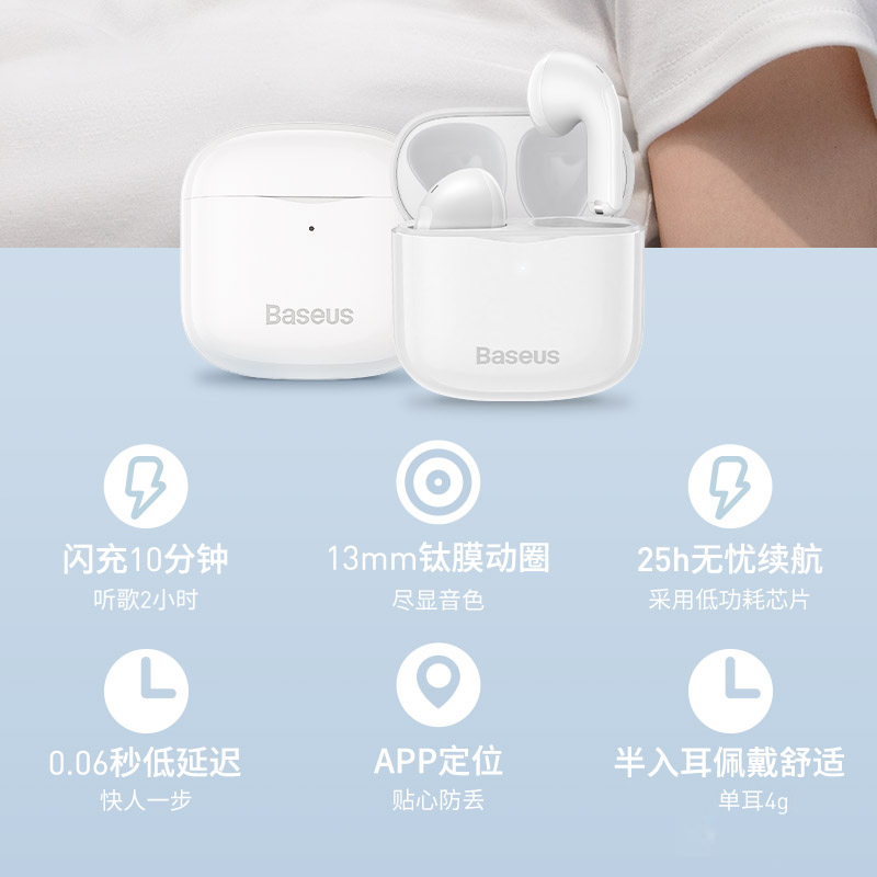 倍思 E3真无线蓝牙耳机半入耳式游戏吃鸡低延迟音乐降噪适用于苹果华为vivo小米荣耀oppo 白色3163件已付款抢! -