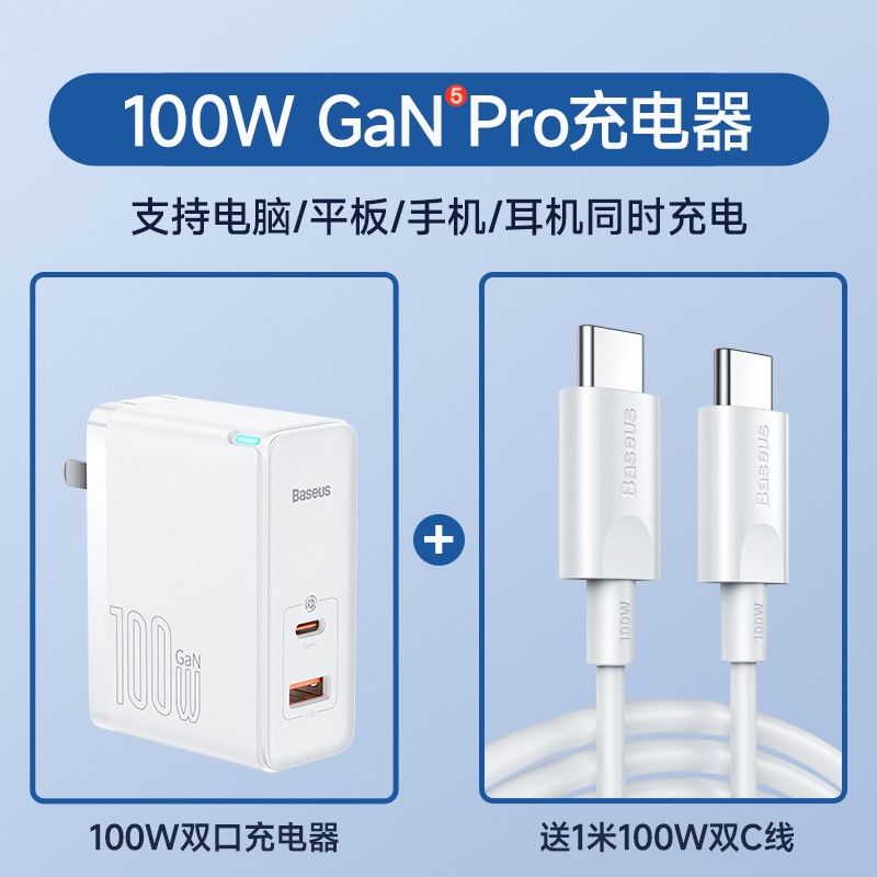 倍思(Baseus) 100W氮化镓充电器套装双口快充头适用苹果华为小米三星手机MacBook笔记本 【1A1C】100W氮化镓线充套装(性价之选) 白9833件已付款抢! -