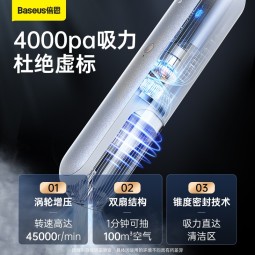倍思 4000pa车载吸尘器 无线手持车用迷你便携式汽车吸尘器 车内家用大吸力车家两用大功率吸尘器 【白色】4000Pa随手吸8229件已付款抢!