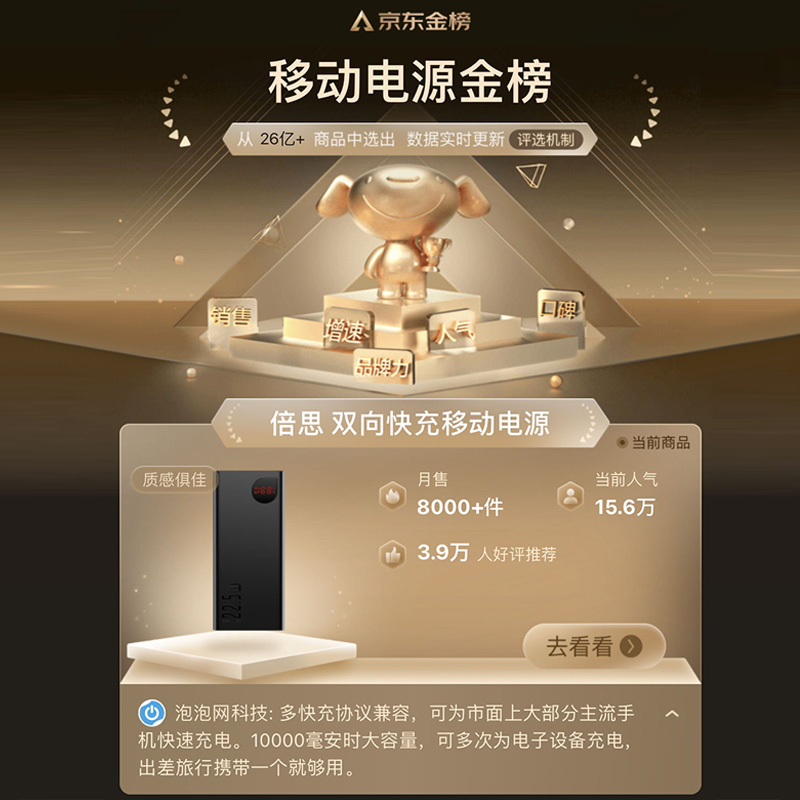 倍思 充电宝10000毫安时 支持苹果PD20W华为22.5W超级快充移动电源数显纯金属大容量适用于苹果14/13华为小米1287件已付款抢! -