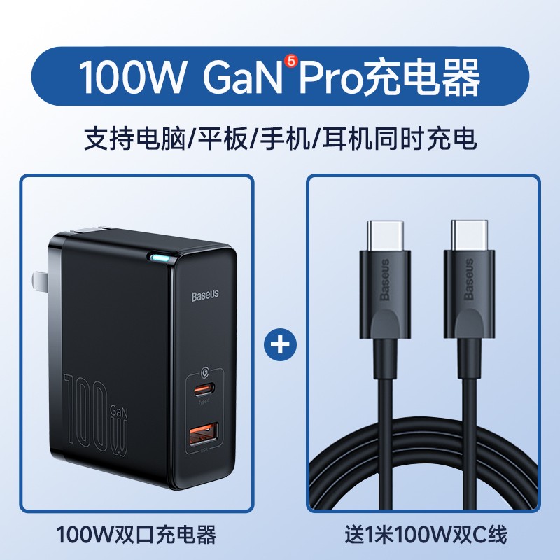 倍思(Baseus) 100W氮化镓充电器套装双口快充头适用苹果华为小米三星手机MacBook笔记本 100W氮化镓多口快充+配100W线【套装】 黑2156件已付款抢! -