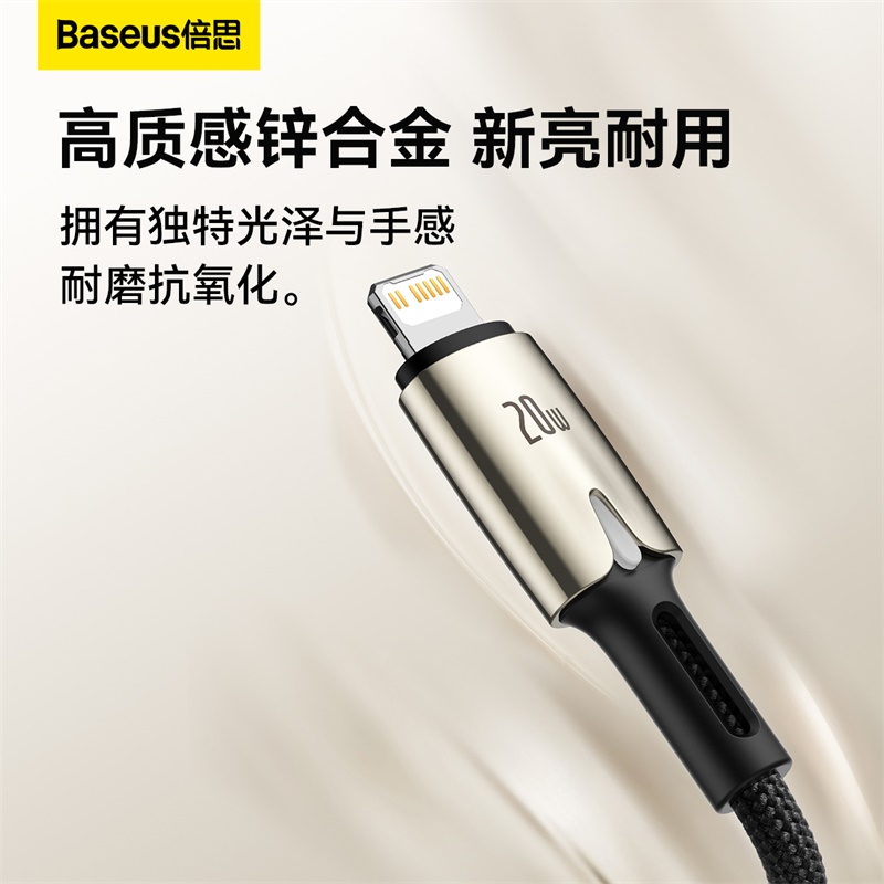 倍思 苹果数据线Type-C充电线PD快充20W充电器线适用于iPhone14/13/12ProMax/xs手机带夜灯编织加长2米黑色4391件已付款抢!