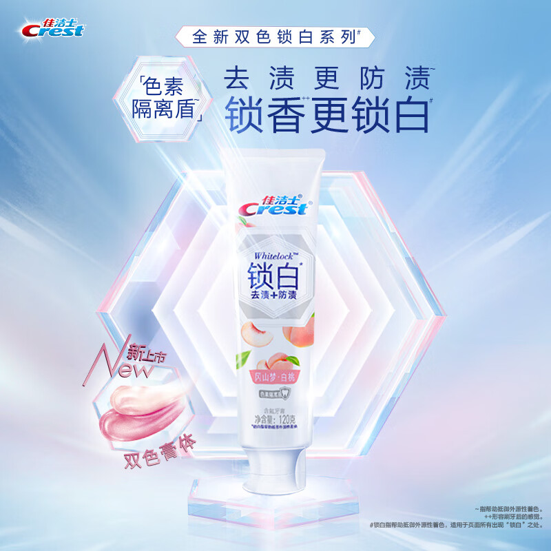 佳洁士香氛锁白牙膏美白牙膏去黄去渍防渍含氟防蛀固齿清新口气白桃味120g9755件已付款抢! -