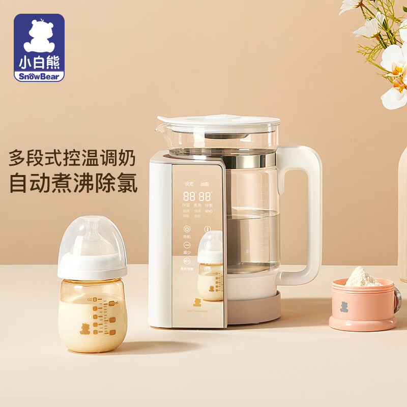 小白熊 婴儿恒温水壶调奶器1.2L 多功能婴儿冲泡奶粉热水壶 温奶暖奶器玻璃烧水壶养身壶带小夜灯 HL-50013420件已付款抢! -