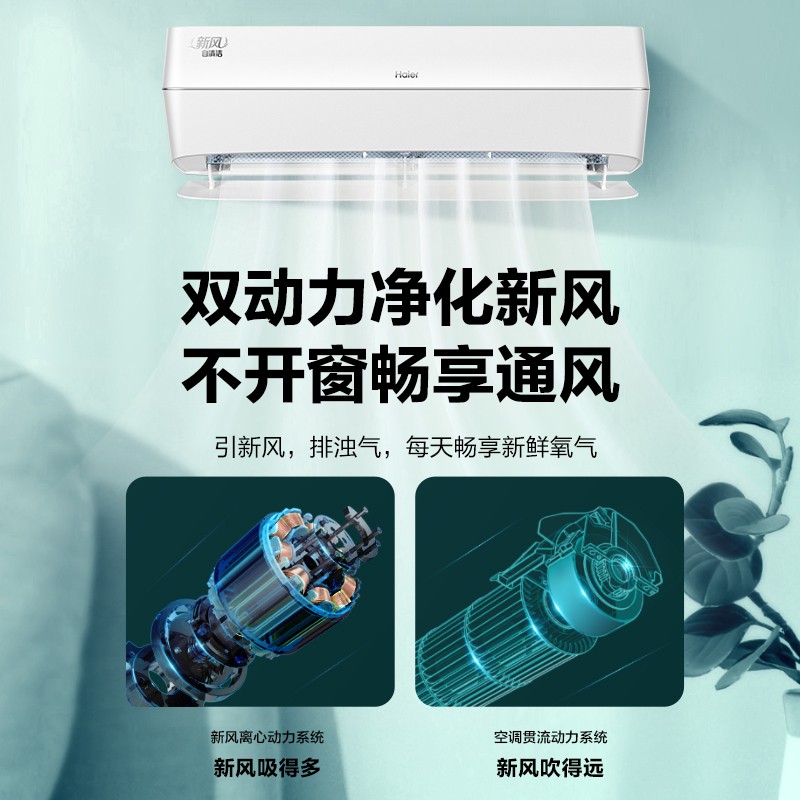海尔(Haier)1.5匹 新风 一级能效 卧室壁挂式空调挂机 变频冷暖五重净化 KFR-35GW/10AFA81U1 以旧换新4120件已付款抢! -