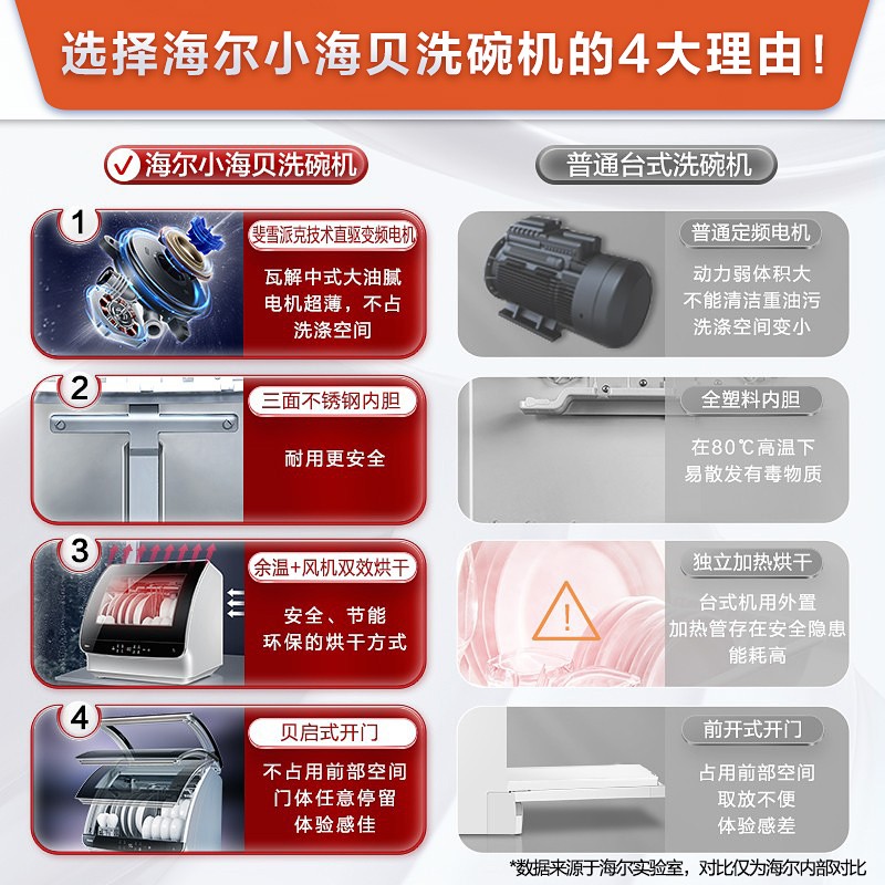 海尔(Haier)洗碗机台式家用2-4口之家高温除菌双效烘干变频直驱电机离子软水刷碗机小海贝-HTAW50STGB3383件已付款抢! -