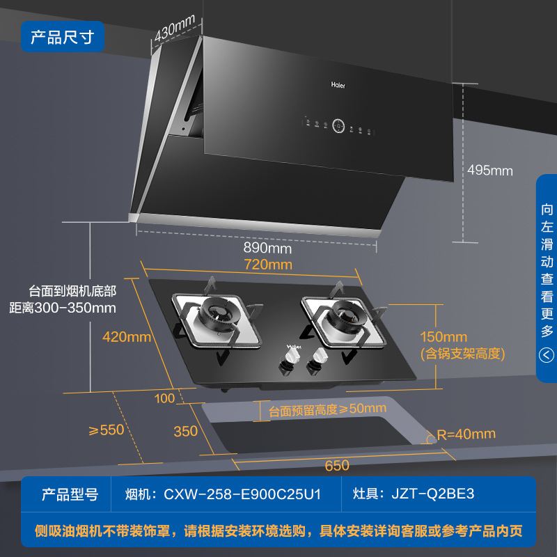 海尔(Haier)抽油烟机 侧吸式 超薄近吸 22m³/min有效风科技 热熔洗自动清洗 家用油烟机套装C25U12331件已付款抢! -