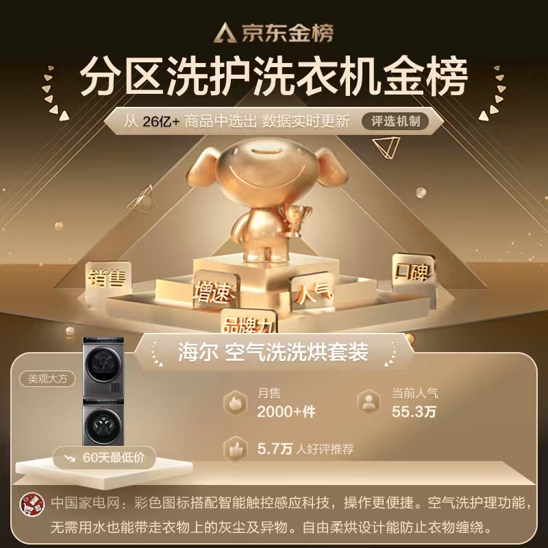 海尔(Haier)洗烘套装晶彩直驱变频10Kg全自动洗衣机烘干机家用热泵干衣机EG100BDC189SU1+GBN100-189U14371件已付款抢! -
