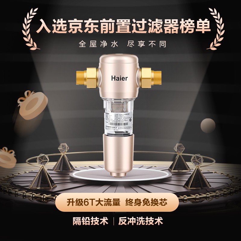 海尔(Haier) 升级6T前置过滤器全屋净化净水器HPF28反冲洗6T大通量家用全屋中央管道过滤器 官方配置1691件已付款抢! -