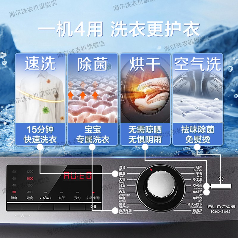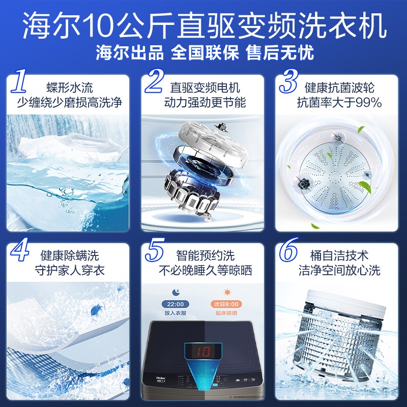 海尔(Haier)全自动洗衣机智能预约自编程10公斤变频直驱洗脱一体租房洗衣机家用波轮洗衣机4718件已付款抢!