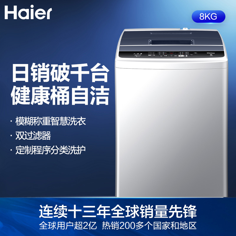海尔(Haier) 以旧换新波轮洗衣机全自动家电 8公斤一键操作 多重安全保障 专属程序洗 租房神器 EB80M0094932件已付款抢! -