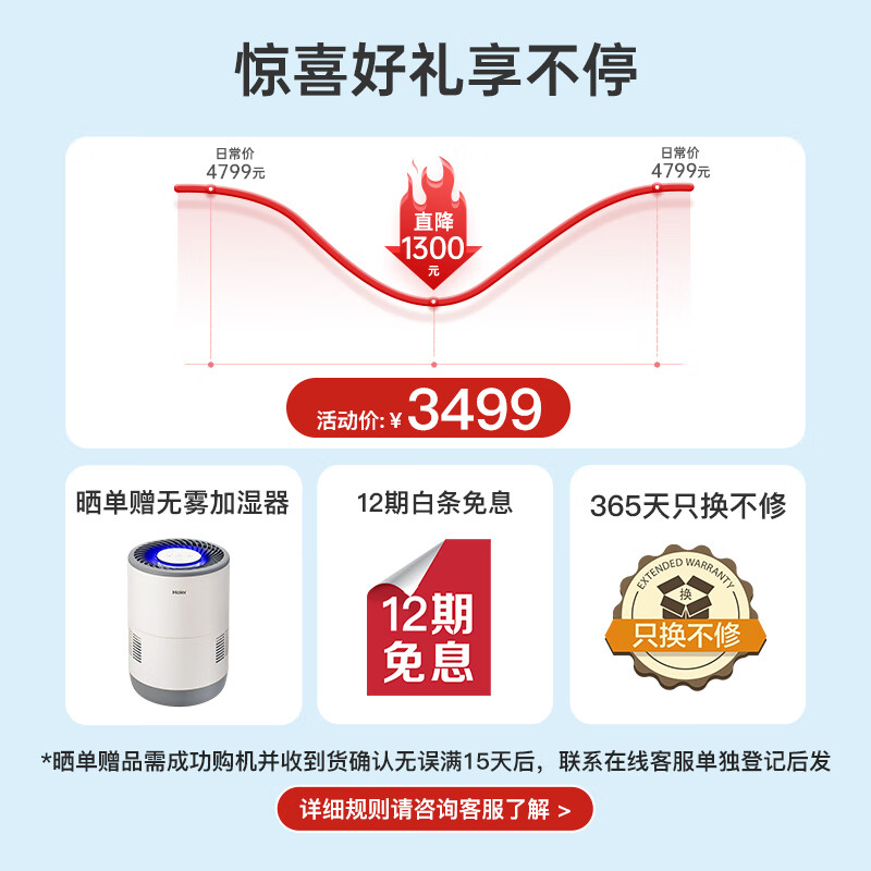 海尔(Haier)空气净化器家用除甲醛过敏原雾霾 负离子除菌 智慧启停 氨基酸除醛 甲醛数显KJ800F-PLUSU11556件已付款抢! -