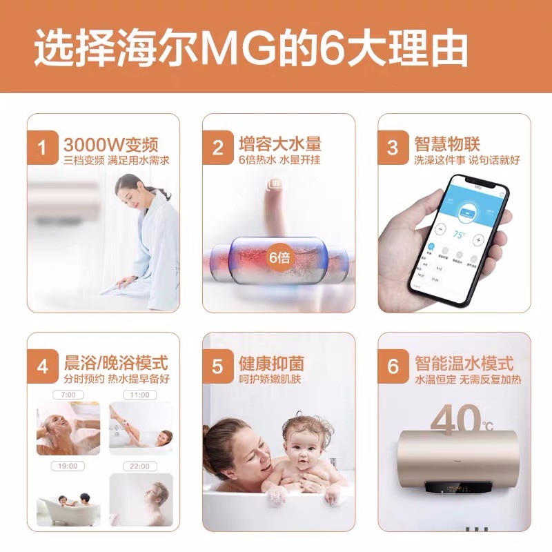 海尔(Haier)电热水器家用电储水式一级能效双管变频速热洗澡器WIFI智能预约节能上门安装MG 60升【3-4人】6003件已付款抢!