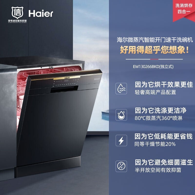 海尔(Haier)洗碗机13套独立式80℃双微蒸汽智能开门烘干全自动家用洗碗机 AK400-EW130266BKD3156件已付款抢!
