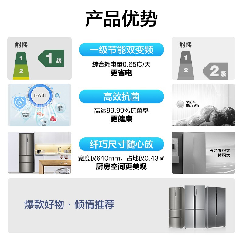 【新品】海尔(haier)十字对开门冰箱 48 5升一级变频冰箱风冷无霜四门对开大容量电冰箱 升级款 干湿分储 T.ABT杀菌7895件已付款抢! -