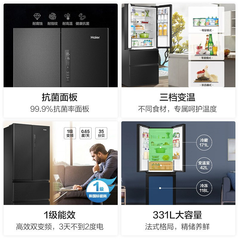 【新品】海尔 (Haier)冰箱 法式多门331升双变频风冷无霜一级能效三挡变温母婴专区保鲜家用电 BCD-331WLHFD78D9U13703件已付款抢! -