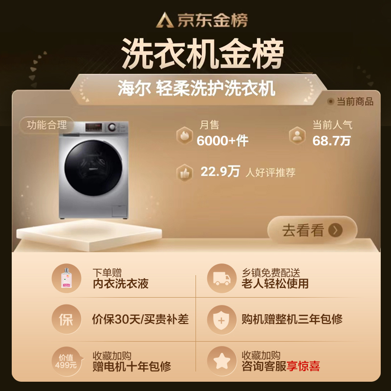 海尔(Haier)10公斤 变频家用全自动 滚筒洗衣机 智能投放 蒸汽除菌 洗烘一体机 洗干一体机EG100HBDC6S定金 ¥49.00(付定金 减1000.00)9380件已付款抢! -