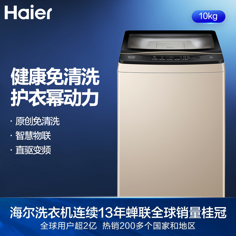 海尔(Haier)10公斤波轮洗衣机全自动直驱变频家用大容量专利免清洗 幂动力丝绸洗羊绒洗169U19805件已付款抢! -